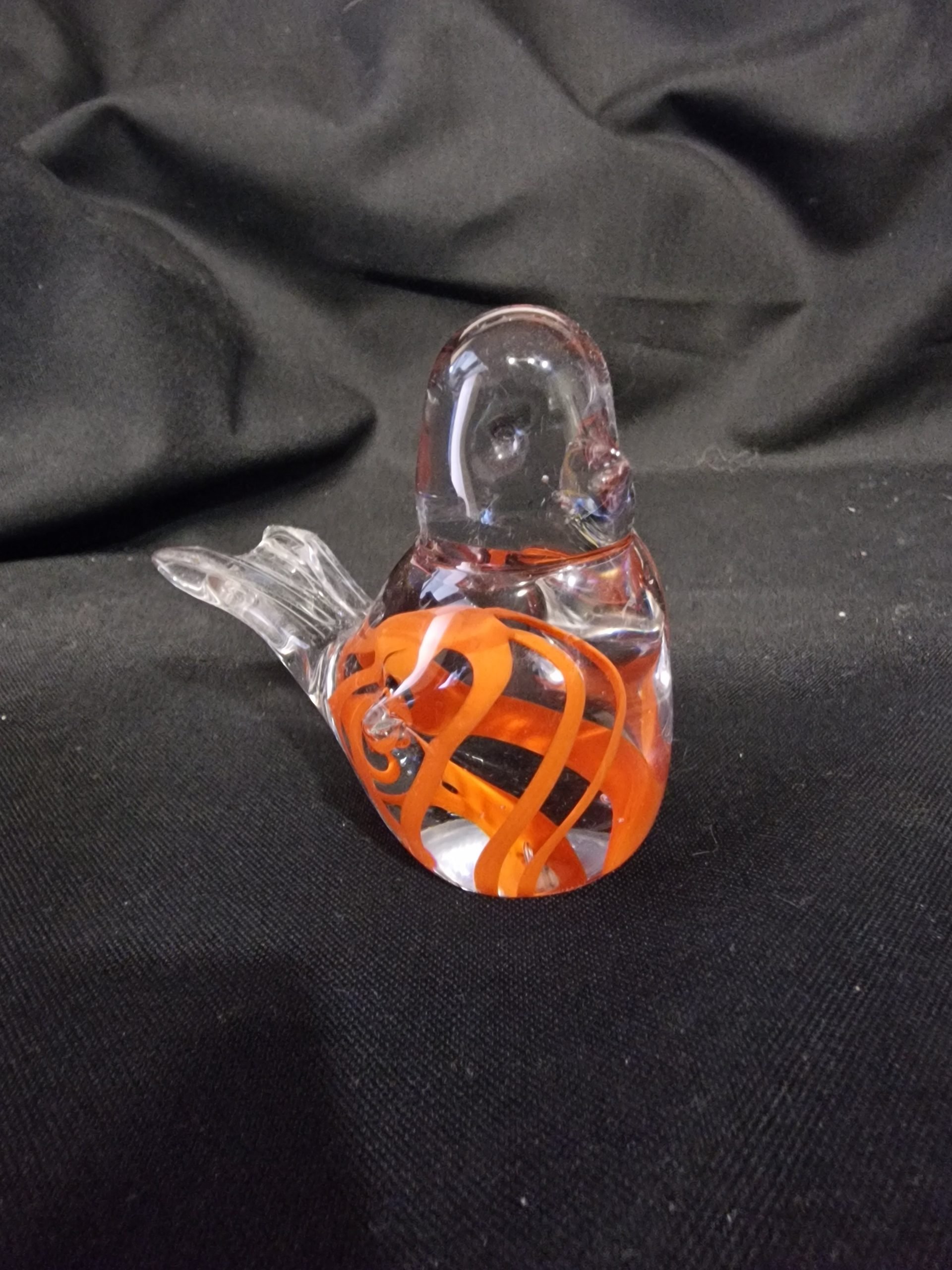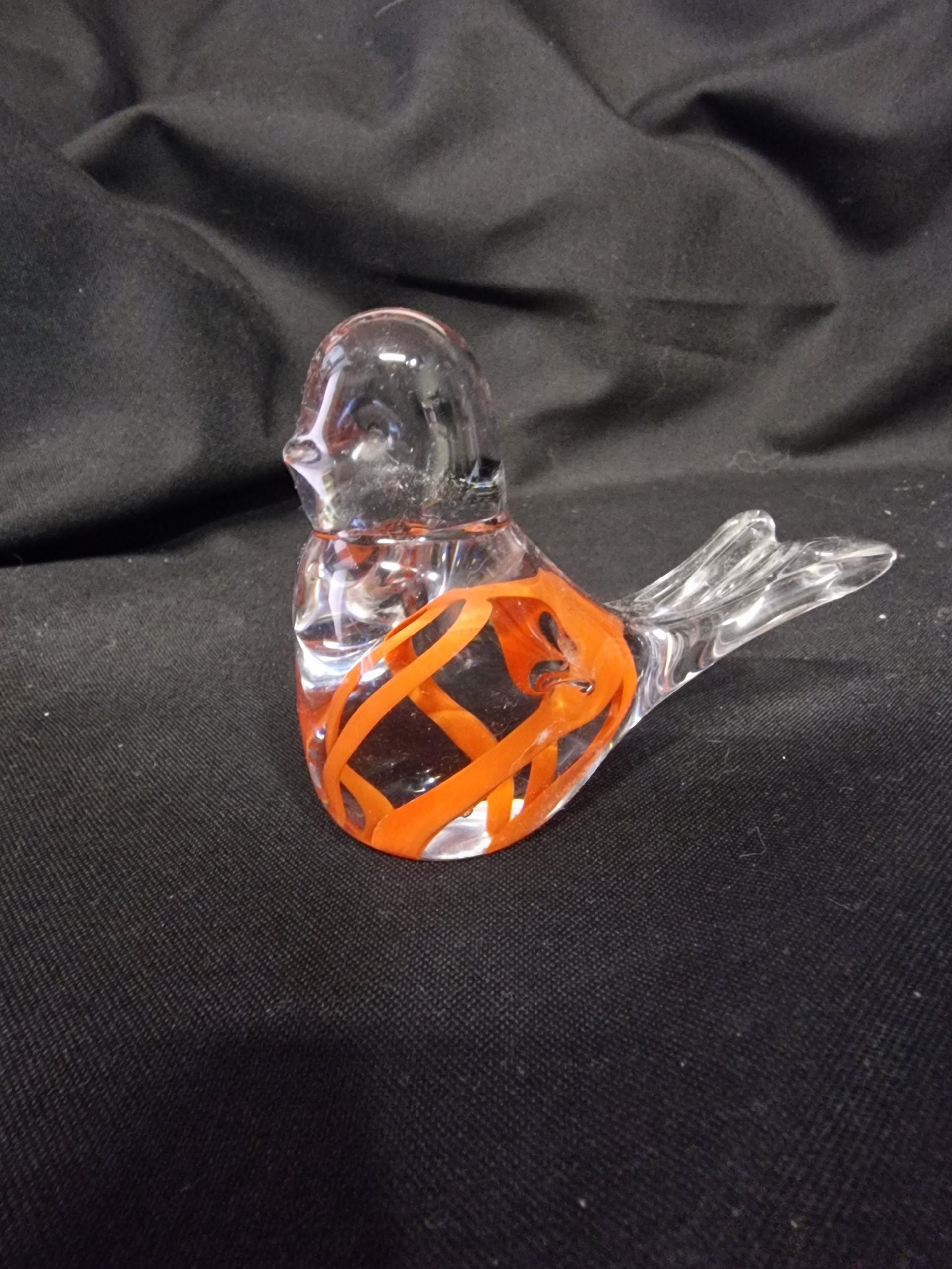Merkloze vogel met mooi oranje detail 10 cm lang en 8 cm hoog €22.50.